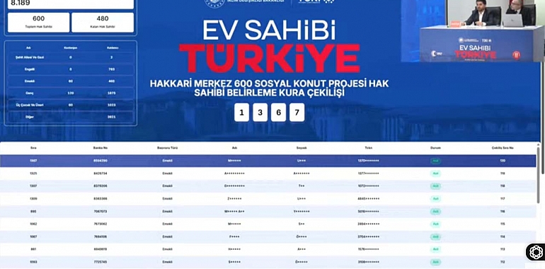 Toplam 1.557 konut için 12.887 başvuru arasından hak sahipleri kura yöntemiyle belirlendi. Hakkari’de TOKİ’den ev sahibi olmak isteyen binlerce vatandaşın merakla beklediği sonuçlar erişime açıldı.