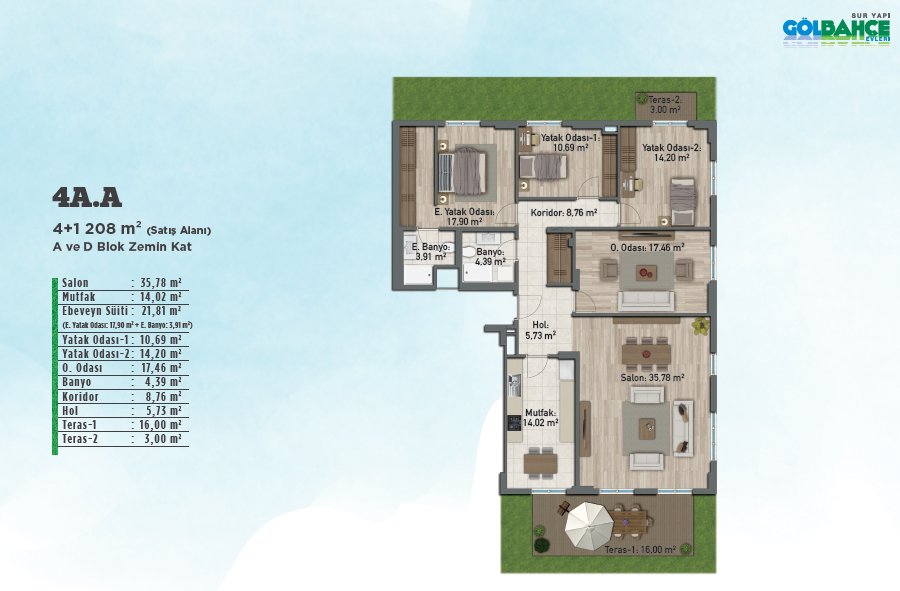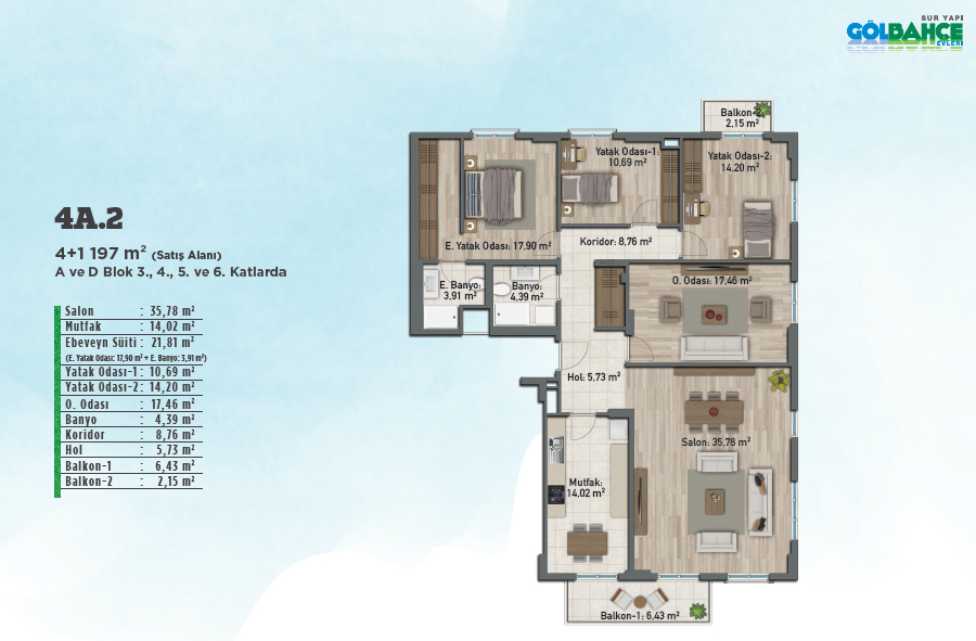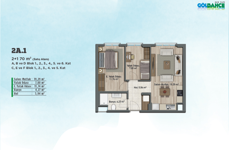Sultanbeyli bölgesinde Mimar Sinan Mahallesi' üzerinde toplamda 21 bin metrekare arsa üzerine inşa edilen Gölbahçe Evleri, 227 konuttan meydana geliyor. Az katlı 6 bloktan oluşan projede bahçe katlı, geniş teraslı dubleks dairelerle birlikte farklı metrekarelerde 2+1, 3+1 ve 4+1'ler yer alıyor. Projede 2+1'ler 70 metrekareden, 3+1'ler 150 metrekareden, 4+1'ler ise 197 metrekareden başlayan büyüklüklere sahip.