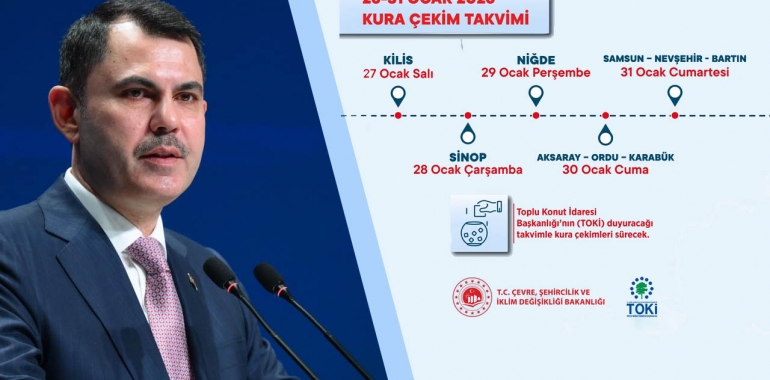 81 ilde hayata geçirilecek 500 bin sosyal konut kampanyası çerçevesinde kura işlemleri tüm hızıyla sürüyor. 29 Aralık tarihinde başlayan kura çekilişleri ile alakalı Bakan Kurum'dan açıklama geldi.