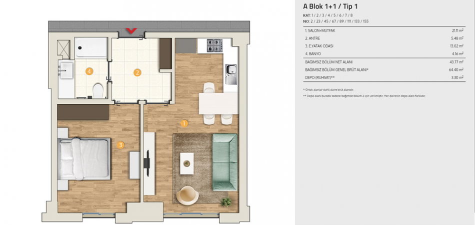 2018 yılı sonunda teslim edilecek Ondörtüç Pendik projesi toplamda 9 bin metrekare üzerinde yükselirken, proje dahilinde 241 daire ve 23 ticari birim bulunuyor. Üç farklı tipte konut seçeneğinin bulunduğu projede, 1+1, 2+1 ve 3+1 daire seçenekleri y müşterilere sunuluyor. Ondörtüç Pendik'te daire büyüklükleri ortalama 68, 103 ve 146 metrekare olarak planlandı.