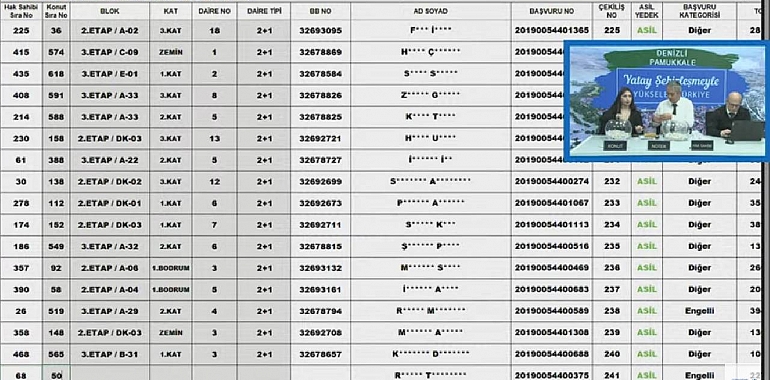 TOKİ DENİZLİ PAMUKKALE KURA ÇEKİLİŞİ SONUÇLARI CANLI YAYINI